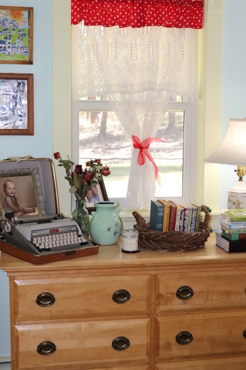 To clean and orderly, add happily and beautifully decorated (not “fashionable and politically correct” decorating), comfortable and comforting, relaxing and restoring, aromatic with both home-concocted essential oil sprays (see below) and no-bake cookies (those are coming later this evening because we don’t want to get carried away with all this weight-loss and fitness stuff), and all five CD trays filled and playing Mozart, and I feel more than prestigious. I feel blessed.